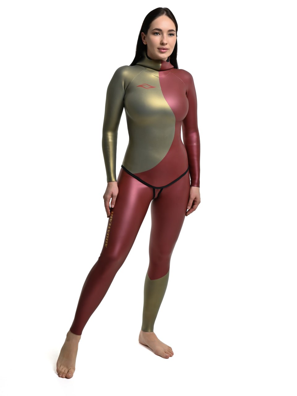 Асимметричный крой костюма создает впечатляющий силуэт, подчеркивающий вашу фигуру и придающий образу динамичность. Этот гидрокостюм не только функционален, но и помогает вам выглядеть великолепно под водой.